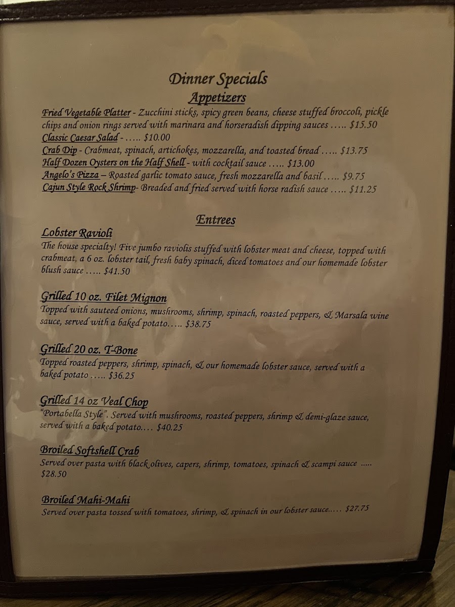 Highlights include the Stuffed Flounder and the Seafood Combination, which display culinary expertise in Italian cuisine. Customers rave about the lobster ravioli and chicken Anthony, noting the nostalgic atmosphere and attentive service. Angelo's Fairmount Tavern not only serves delicious meals but also creates lasting memories for every guest.